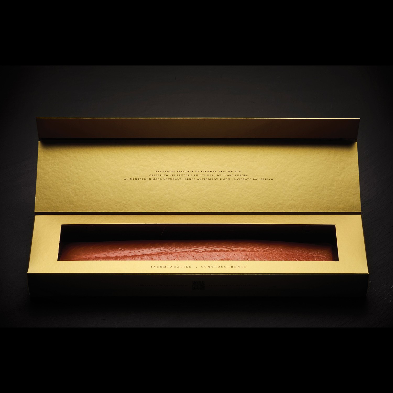 The special selection, enriched with 23 k goldThe Gold Edition is a truly unique way to taste the Upstream Heart fillet: a special selection of salmon with the firmest and finest meats enriched with crumbs of edible 23 carat gold. The Gold Edition has a unique preparation, it is an ideal gift to give away or to treat yourself to enjoy all the taste of the most precious moments.