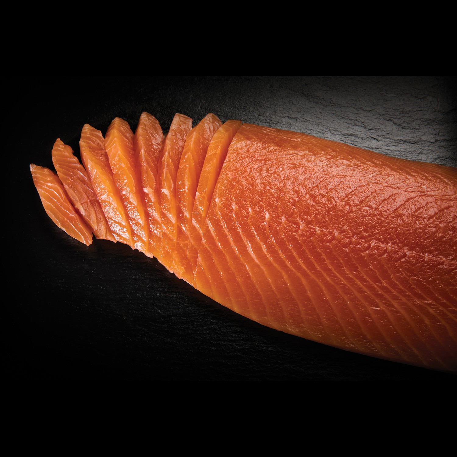 The royal formatThe King salmon side is the encounter between different intensities of flavour in magnum format: it is the largest of the Upstream sides, coming from very large salmons. With its size, the King side is perfect as a valuable gift and to cater for important consumption needs.